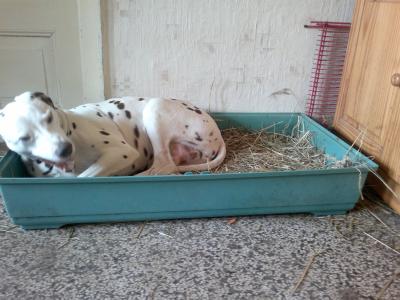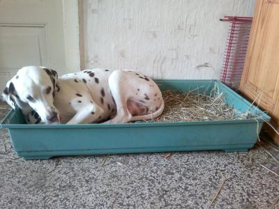 Das Beste ist: Der alte Hundezwinger ist abgerissen (anderhalb Tage Arbeit) und der Hofhund Florian, den wir mit übernommen haben, hat es glücklich erlebt. Schanzwedelnd ist er immer wieder um die beiden Männer herum, als könnte er sein Glück nicht fassen, dass dieser äußerst stabile und geschweißte Drahtverhau mit zwei kleinen Hütten wegkommt. Er lag dabei, die wärmende Sonne genießend. Doch leider war Florians Glück nicht von Dauer, er ist heute Mittag verstorben. Er bewacht jetzt unseren Hof von einer anderen Stelle…