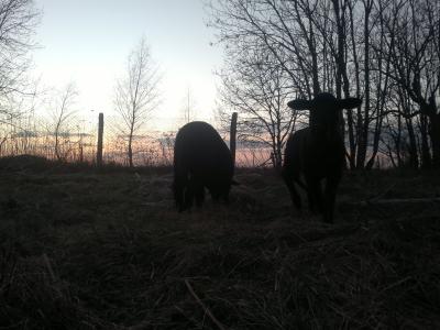 … neulich besuchten uns unsere Nachbarn (aus`m Dorf) und fragten, ob der angedachte Tausch unserer Schafsböcke denn noch aktuell sei. Nachdem sie „Böcki“ für gut und schön befanden, waren wir uns auch gleich einig… so daß, wir also heute, nach dem ich vormittags Luzerne ernten war – puuuh! – Böcki in den Transporter führten. Er ist wirklich ein Sanfter und wurde dann sogleich von Nachbars Zippen neugierig beschnuppert und wohlwollend in Empfang genommen. Wir hatten dann die Wahl, zwischen einem zahmen, braun-schwarzen und einem weißen, eher ängstlichen Bock. Die Entscheidung fiel sofort zu Gunsten des dunklen Bocks….