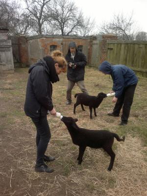 wobei es wie immer Gerangel gab, und die jungen Frauen erstaunt waren, wie weich und sanft doch so ein Schafsmund ist.