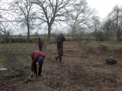 Kai machte sich an den Bodendecker der Baugrube und legte den Rest frei, später noch unterstützt von Deniz.