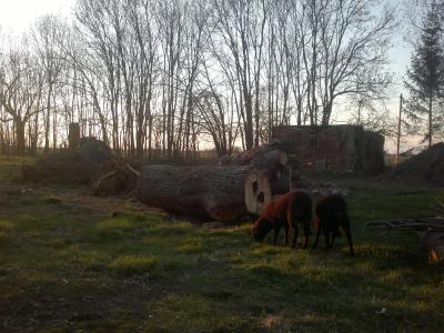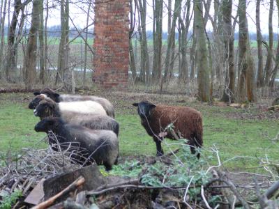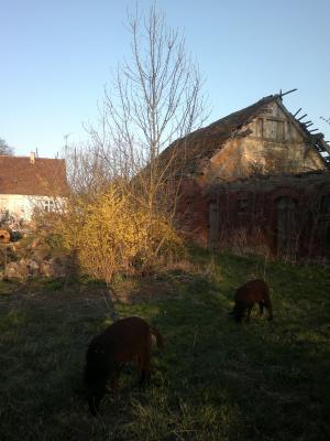 Seit Dienstag haben wir Tilman zu Besuch und Tilman hilft Wieland vier Tage die Woche für einige Zeit und plötzlich macht es hier viele kleine Rucks vorwärts. Alleine in dieser Woche sind u.a. die Ställe wieder begehbar gemacht worden, d.h. die Schafis werden bald ausziehen, gestern haben sie bei Sonnenschein, ihr zukünftiges Gehege kennen gelernt und waren erst einmal sehr vorsichtig, bis sie begannen Gras zu kosten und es auch aßen.