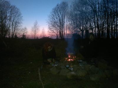 Abends kochten die Pfadis am Lagerfeuer ihr Essen, während wir in der wärmeren Küche saßen.