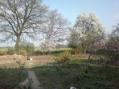 Tilman blieb und beseitigte weiter Holz mit Wieland. Am Karfreitag kamen Ulla und Dieter zu Besuch, bekochten uns fürstlich mit Lachs in Sahne und Bandnudeln dazu. Außerdem kauften sie mit mir zwei kleine Quittenbäume, so dass wir in dieser Woche, sechs Bäume gepflanzt haben, eine Tanne und eine Zuckerhutfichte (Weihnachtsbäume), zwei Magnolien und die beiden Quitten. Es war ein schöner Tag mit den beiden und nachmittags nahmen sie Tilman mit nach Berlin.