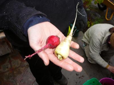 Danach ging es noch einmal in den Garten, um weiße Möhren und Rote Bete ernten, bevor irgendwann der Boden gefriert.
