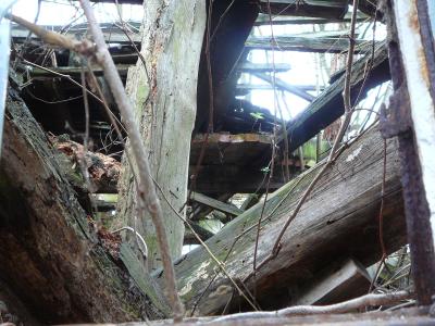 Später wurde der Rest des Holzes aus dem Schafsgehege entfernt und ein Teil auch gespalten. Zwischenzeitlich wurde die knarrende Schaukel bestiegen und im eingestürzten Teil der Scheune fand eine Begehung/ Betrachtung statt.
