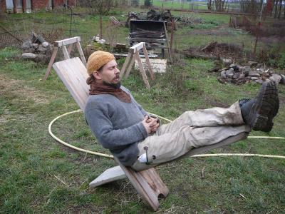 Tilman und Wieland und haben zwei Tage lang schwer geschuftet und jetzt haben wir immer noch eine Menge Brennholz zu machen. Fast nebenbei sind zwei neue Bartäxte entstanden.